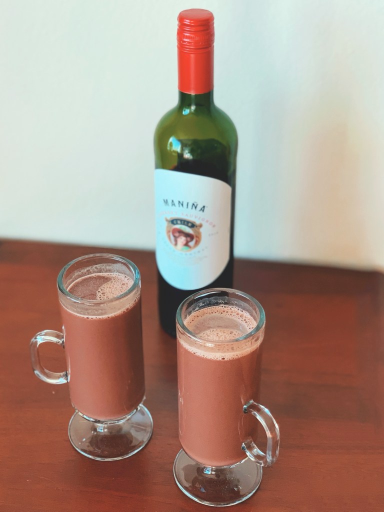 The main thing you need to make this hot chocolate amazing is real, quality chocolate. Please for the love of wine, do not mix cocoa powder or low-grade chocolate into this, you will not get the same result. The Williams Sonoma mix is made by Guittard who also makes chocolate chips that you should be able to find at your local grocery store. Another great option is Ghirardelli. I also like to roughly chop the chocolate chips so they melt in smoother and faster. As for the milk and wine, this mainly depends on your preferences. Real milk will likely be the most decadent but I personally like to use almond milk as it’s easier on my stomach and I feel that the thinner consistency works better with the wine. For the wine I’ve tried pinot, zinfandel, and cabernet sauvignon and they’ve honestly all been wonderful. Mainly I’d recommend opting for something more fruit forward and that leans more sweet rather than savory as this pairs best with the chocolate. Hot tip: read the back of the label for the description of the wine and look for key words like, berries, red fruit, black fruit, jammy, ripe, rich, etc. Once you have all the proper ingredients just follow the recipe below and cuddle up with your new favorite hot chocolate.