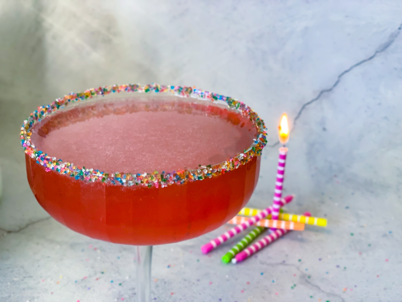 Truly what’s more “birthday” than cake and champagne? This cocktail is the epitome of festive and downright delicious. Vanilla vodka, Chambord and champagne make the perfect sparkling raspberry cake flavored celebration. Honestly, no birthday is needed to drink this lovely libation, just swap the rainbow sugar for white and enjoy the heavenly flavors anytime.